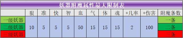 妖器附魔属性参考表
