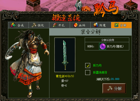妖器作为特殊武器也有完整的强化体系,通过“强化、开孔、分解、附魔”可以大幅度提升战斗力。