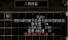 1级:无敌持续30秒、冷却10秒