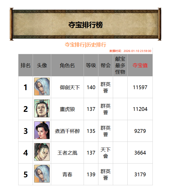 2026《新天下无双》元旦活动“夺宝大赛·大家乐”最终获奖者已经产生,让我们一睹大侠们的风采! 浴火重生: