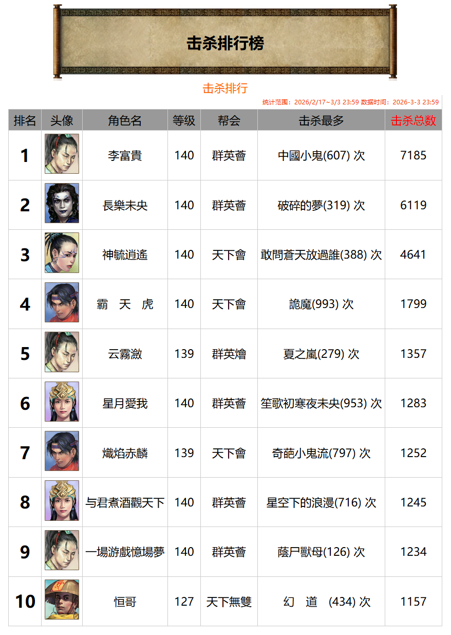 2026《新天下无双》春节专题活动“新春激战·封神榜”获奖者名单已经产生,让我们一睹大侠们的风采!